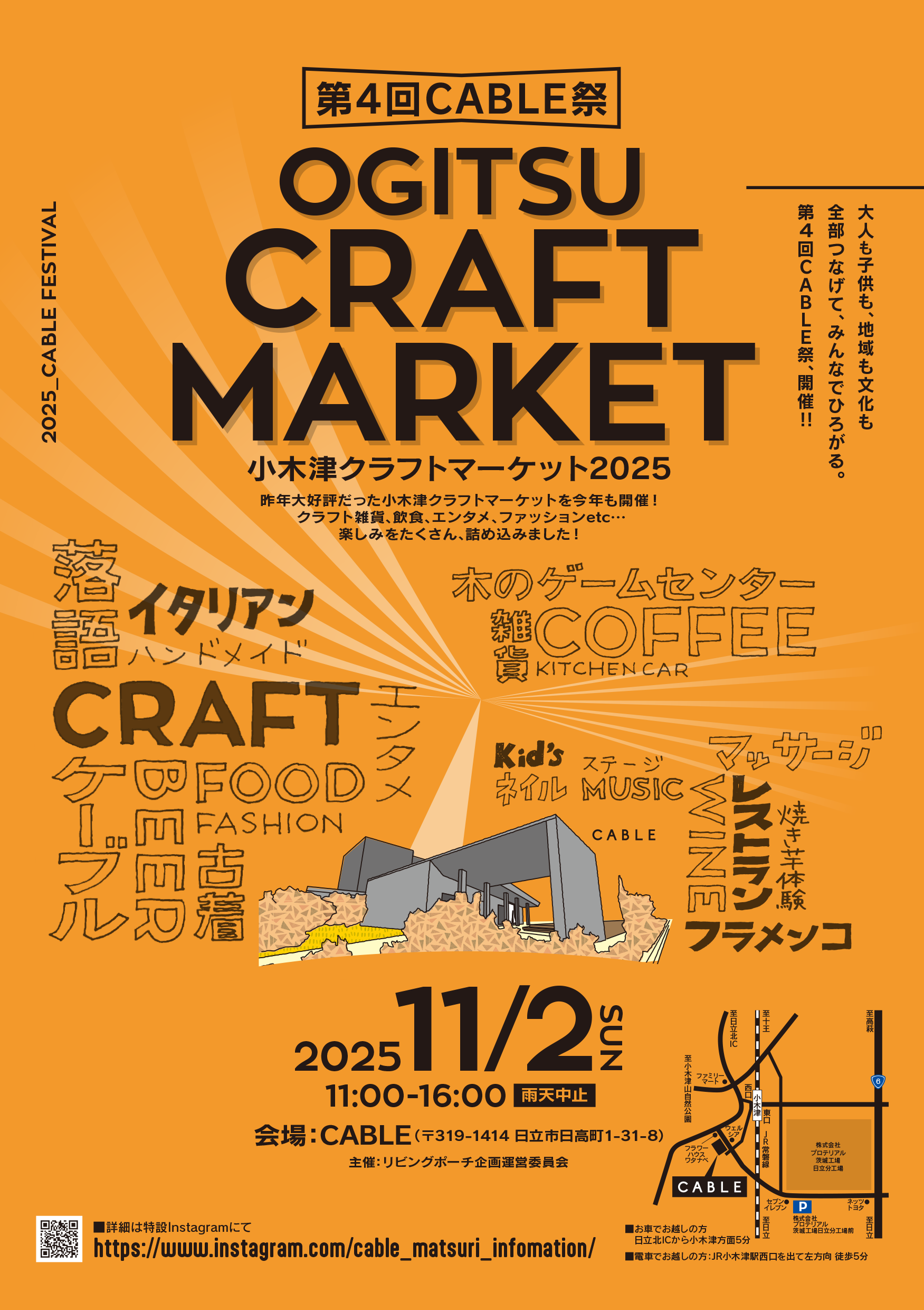●催事内容/○出店者によるクラフト品の展示販売 ○各種ワークショップ ○カフェ&フードコーナー ○DJ、アコースティックライブ