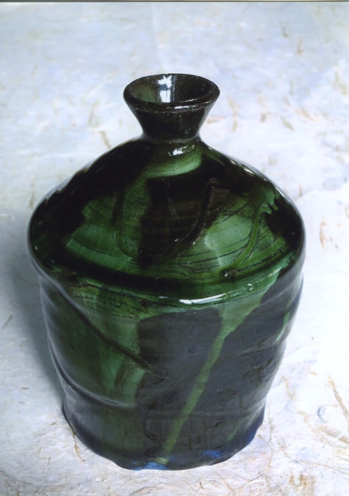 私が好きな緑色を器に表現したく、明るい深みがあり艶のある織部釉を作り『創作織部』を作陶しています。