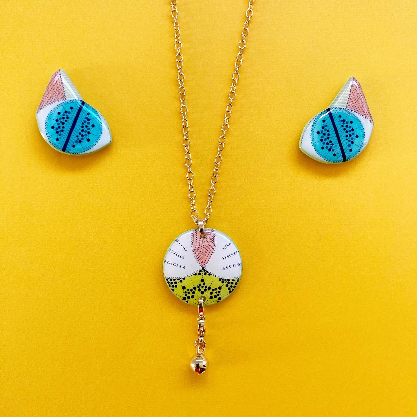 点と点線、曲線、直線を使い模様描きをしたアクセサリー。