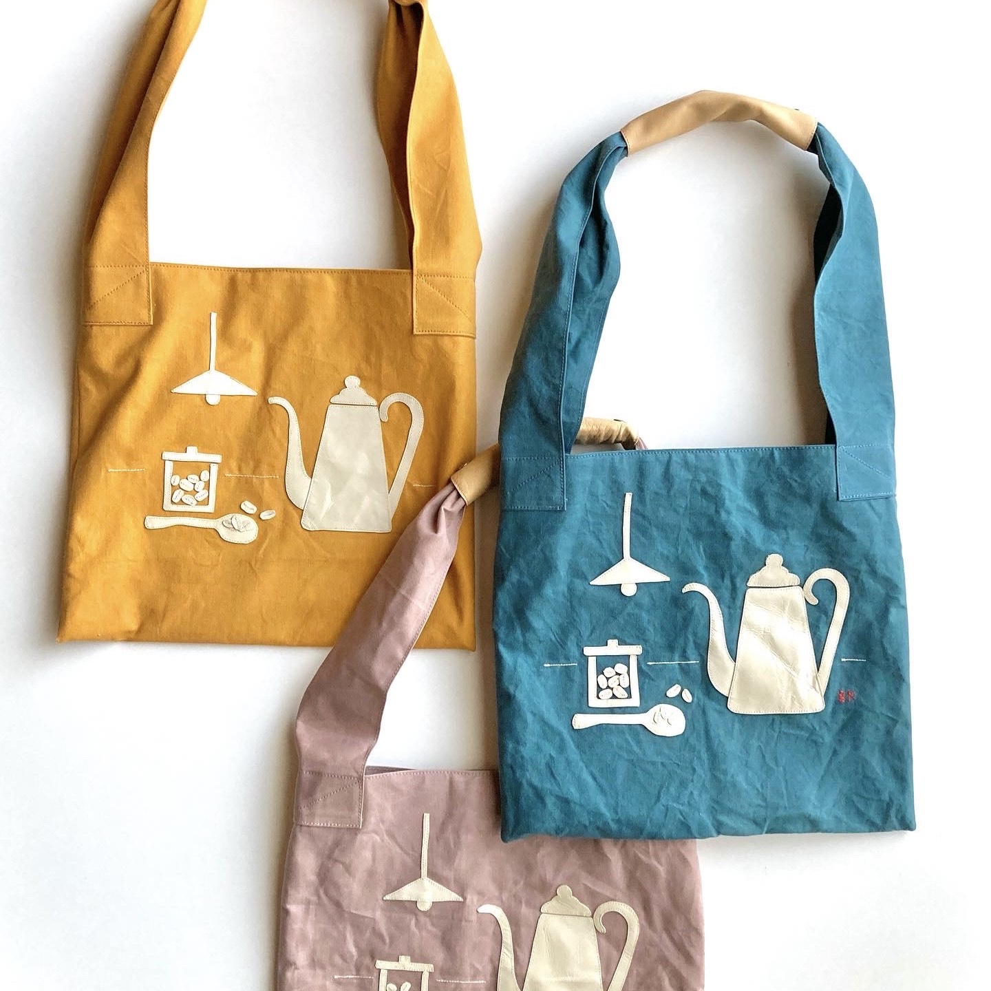 花や動物などのモチーフをアップリケしたバッグはすべて一点ものです。