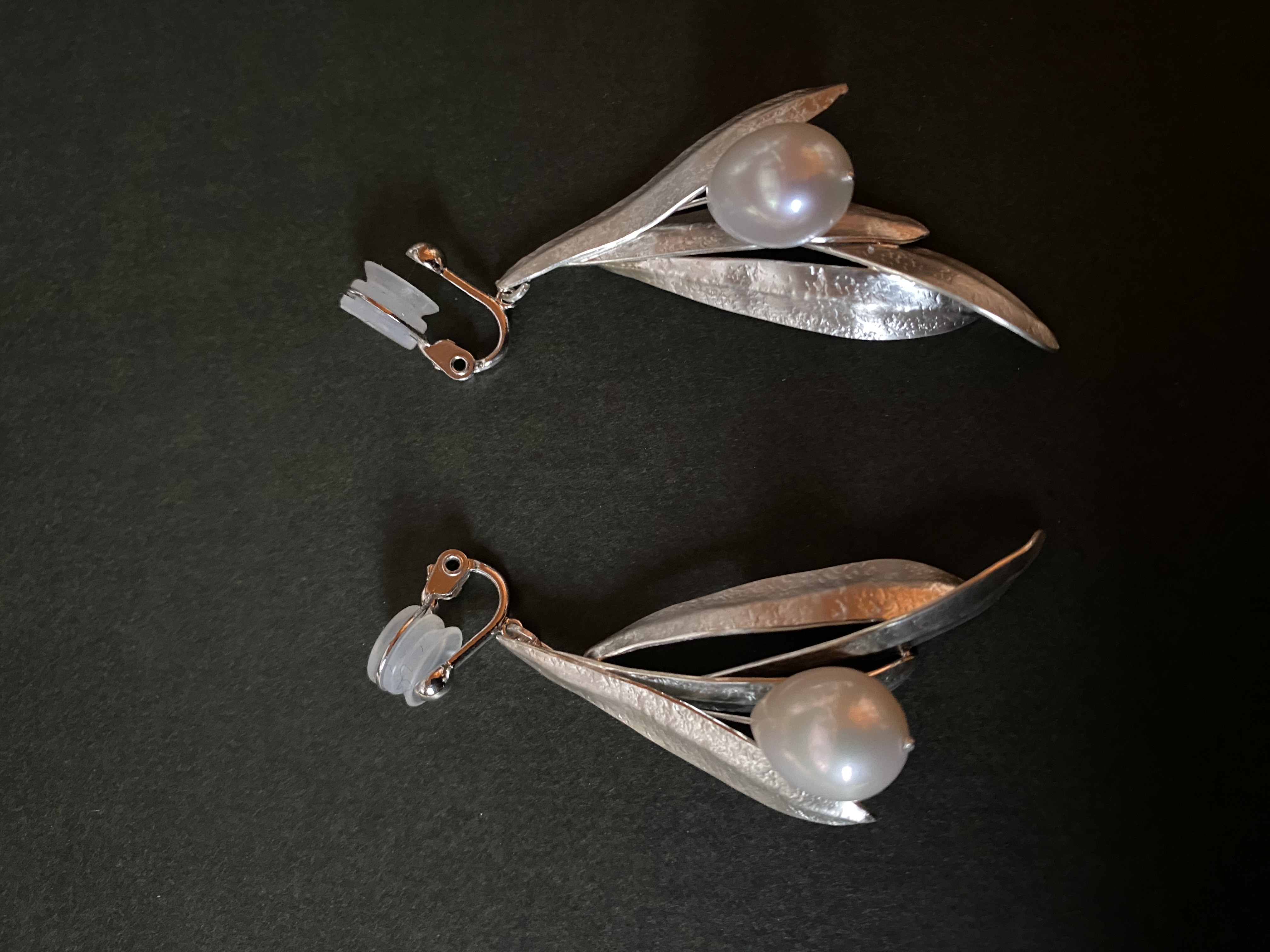 金属に直接装飾を入れる打ち出し技法をイタリアで学び植物の柔らかさを銀や真鍮で表現しています。