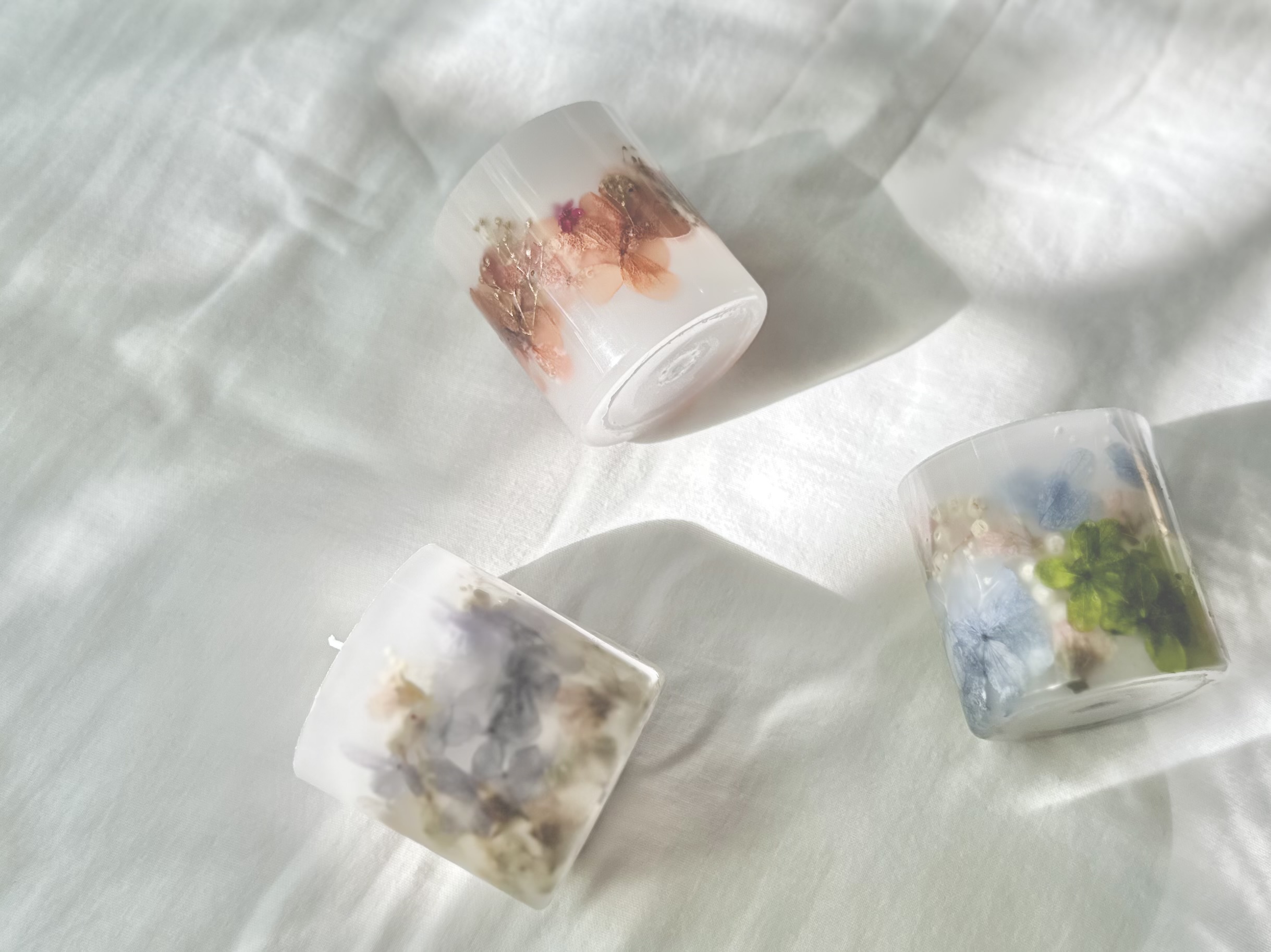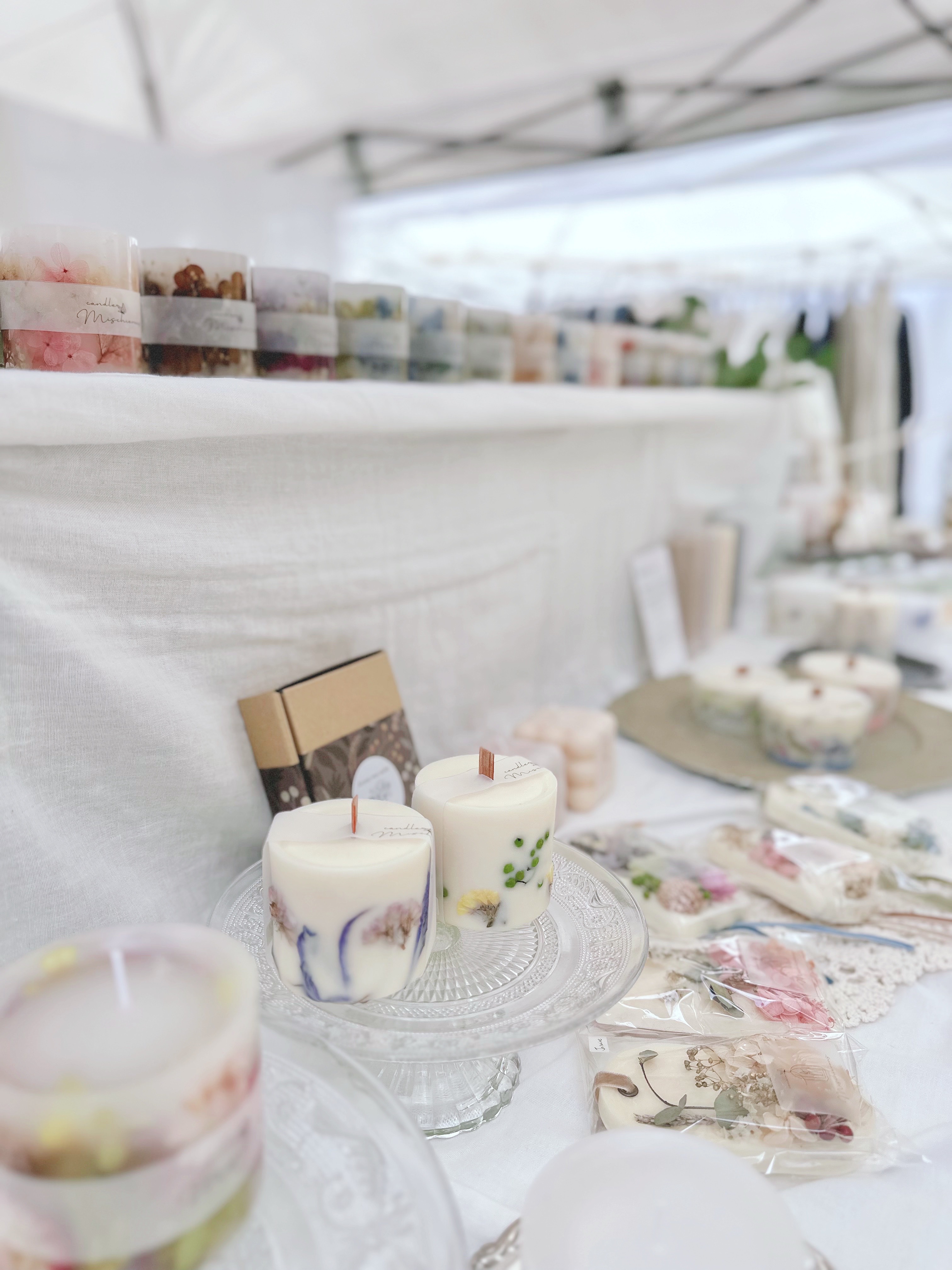 春~夏に使えそうな色合いで、ボタニカルキャンドル・アロマキャンドル・ワックスサシェなどを準備いたしております。