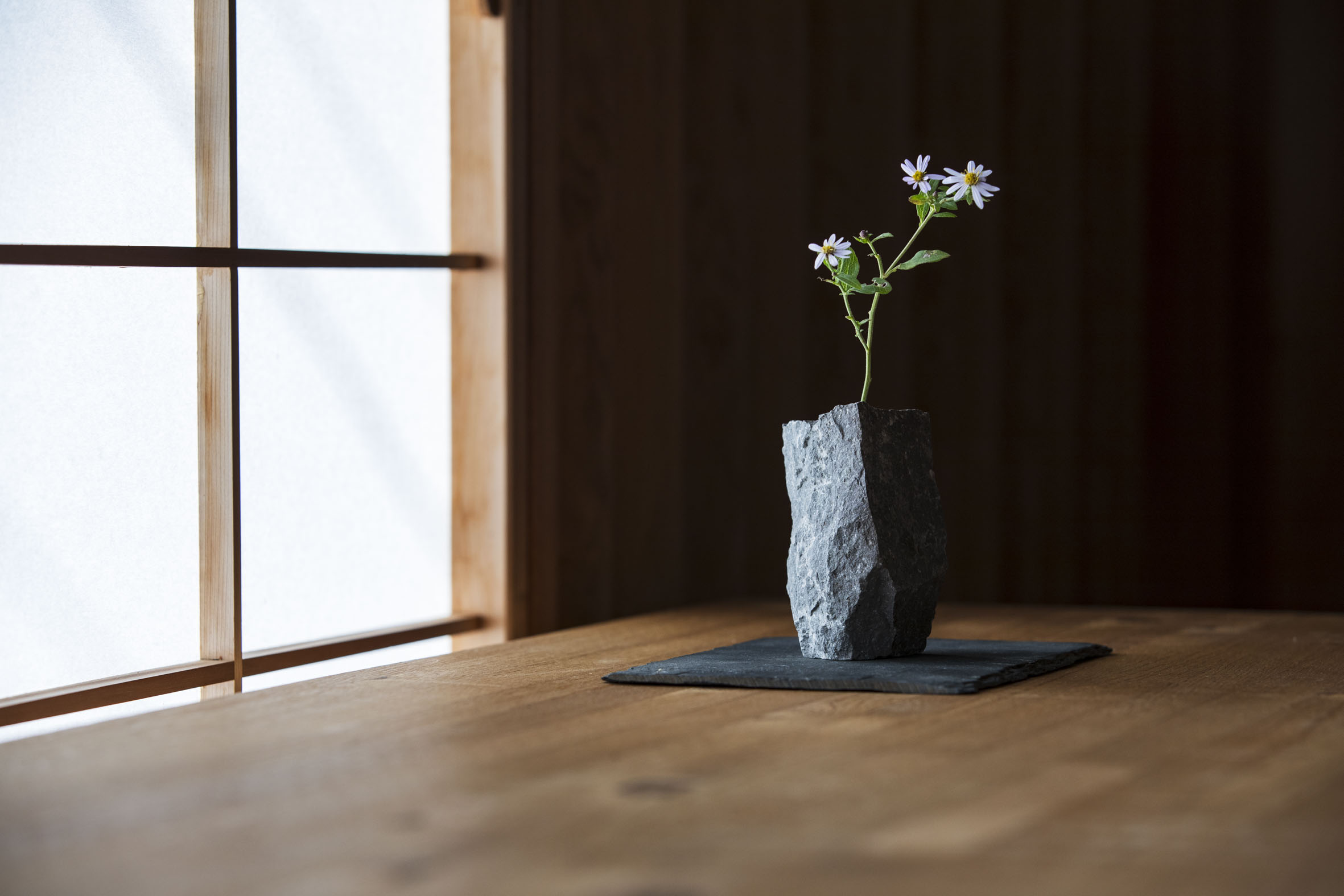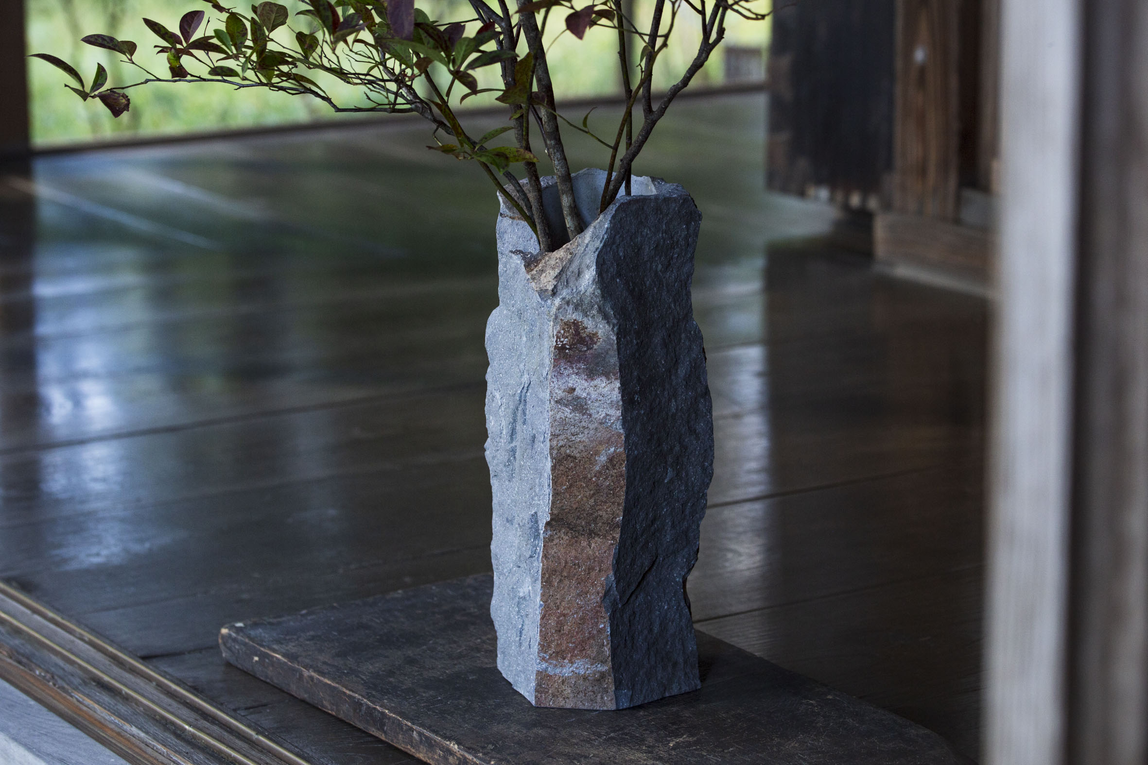 約四十万年前の箱根火山の噴火によって生まれたこの石に、侘び寂びを感じさせる表情を活かしつつ、新たな命を吹き込もう。