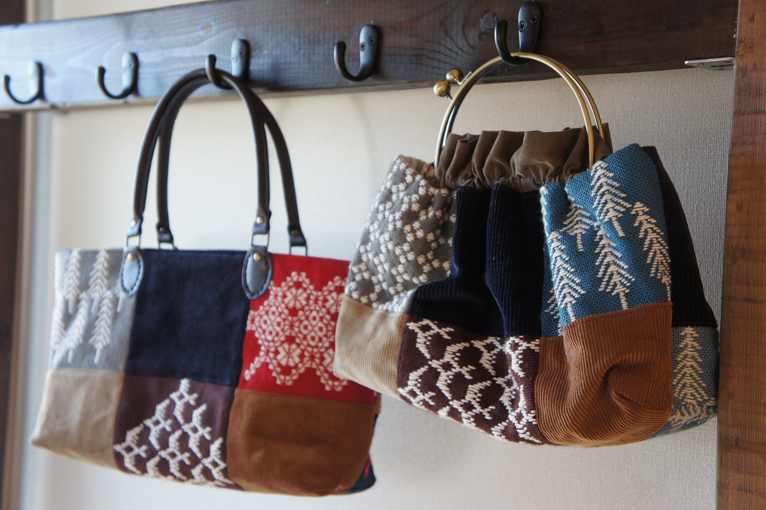 青森の伝統工芸品であるこぎん刺しですが、アクセサリーや髪留めなどの装飾品や、鞄・財布・ポーチなど、日常生活の中で親しみながら使える物を仕立てるように心掛けています。