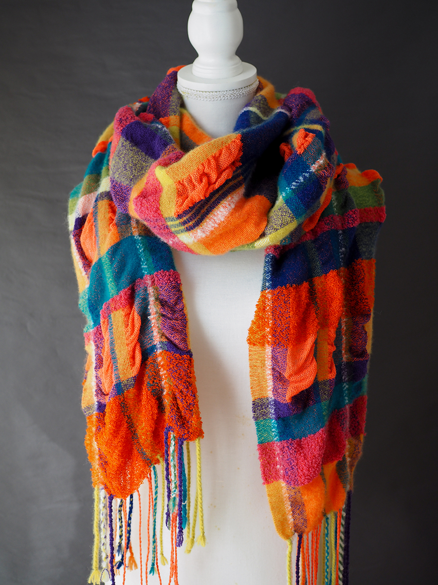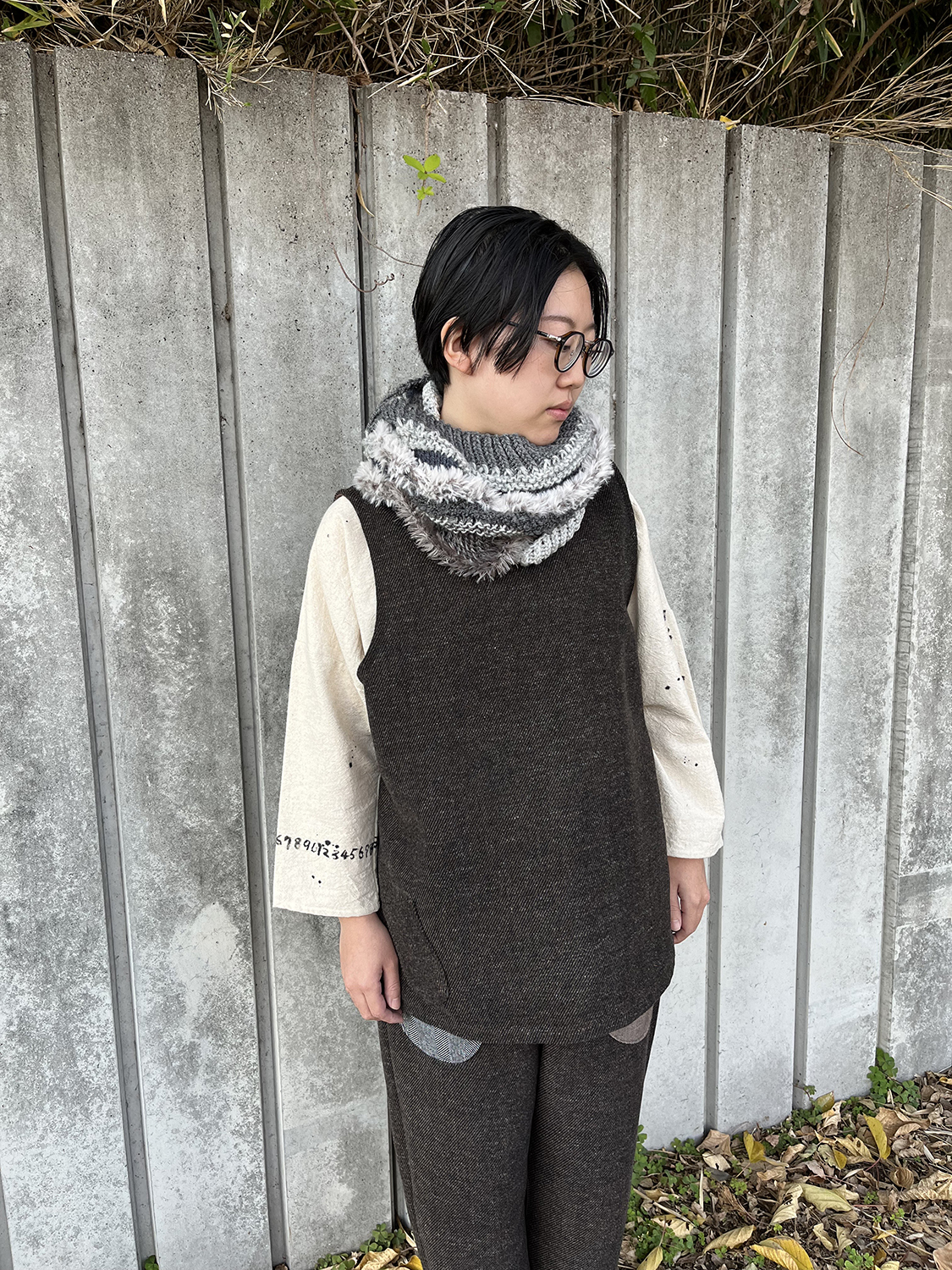 シルクと掛け合わせた立体感あふれるマフラーは、ここでしか手に入らないとっておきの作品です。