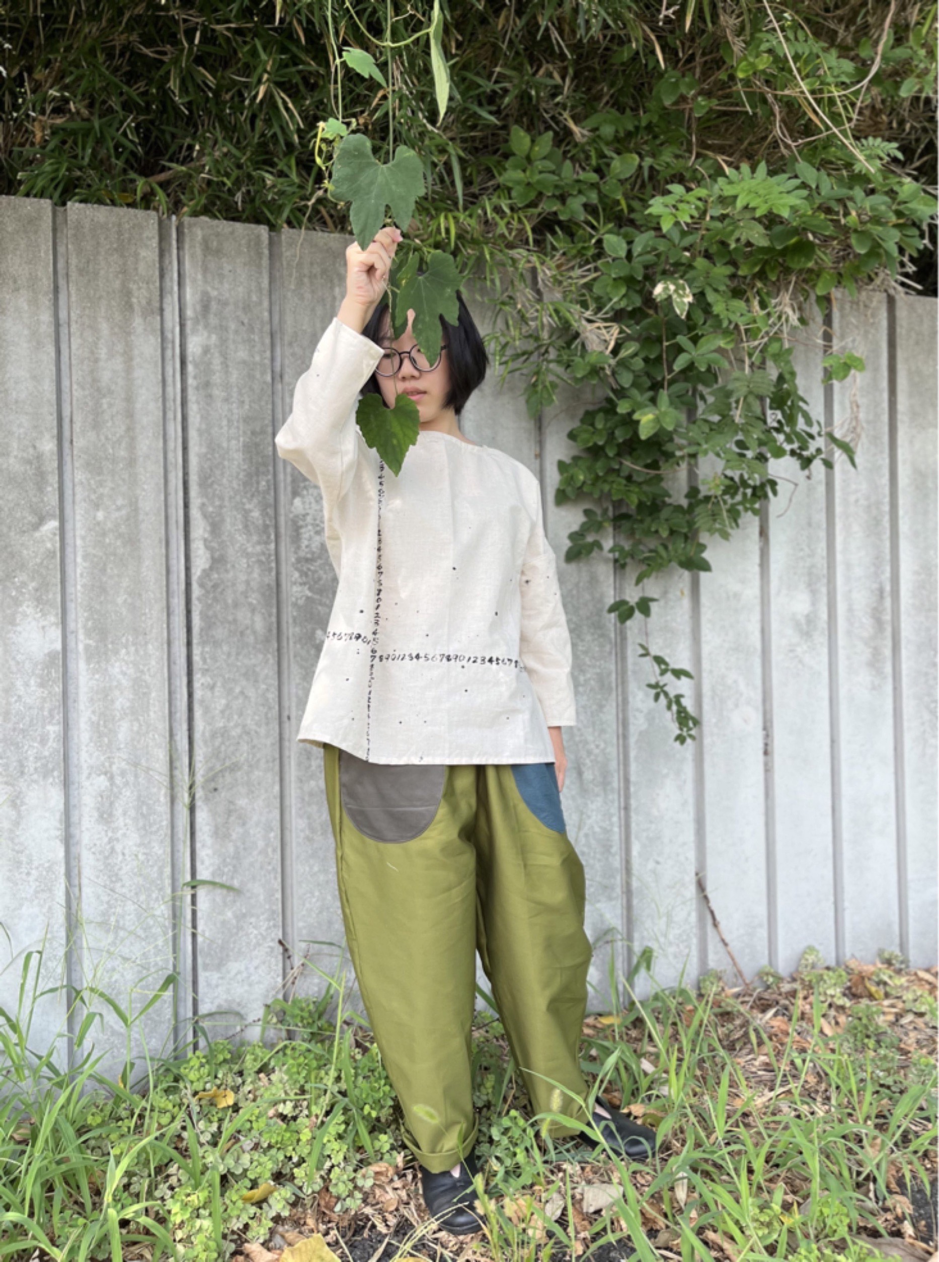 裁断した布地に直筆で絵や模様を描き入れ服に仕立てる「手描き模様の服」、