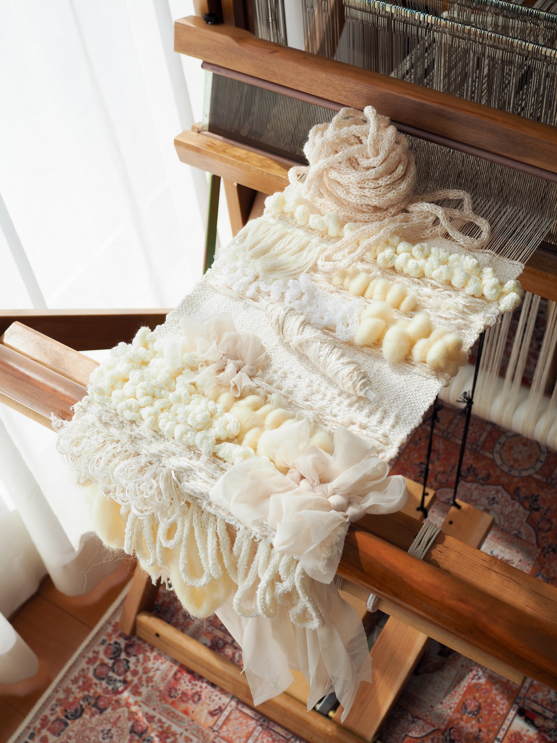 「ひとつひとつ手で織り上げるからこそ生まれる表情や形、 糸だからこそ生まれる柔らかさや深み、愛を持ってぎゅっと詰め込みました。